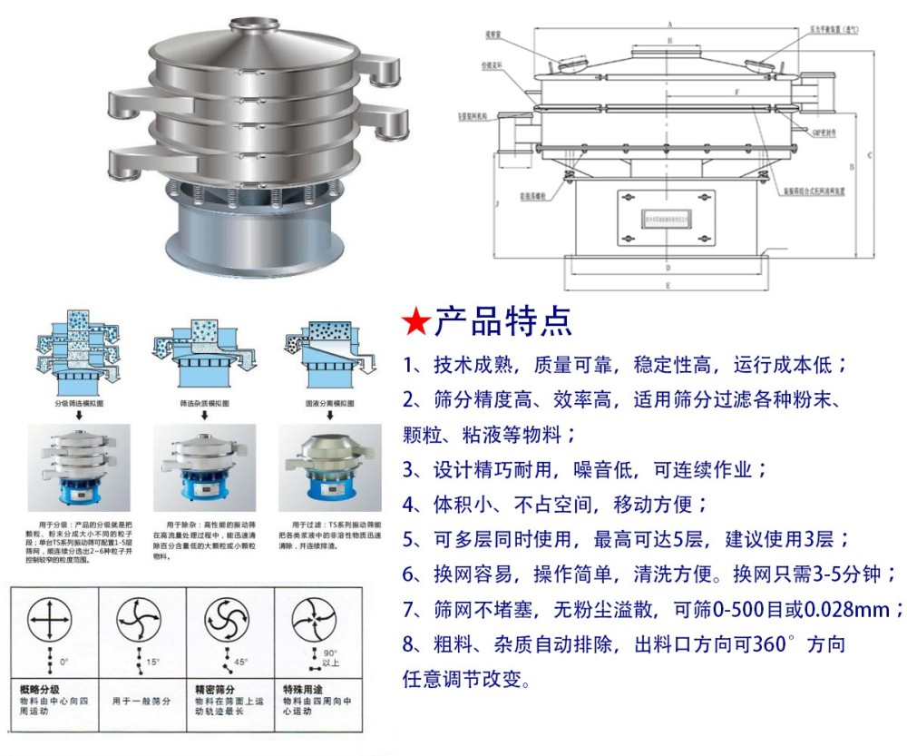 小型不锈钢旋振筛产品特点